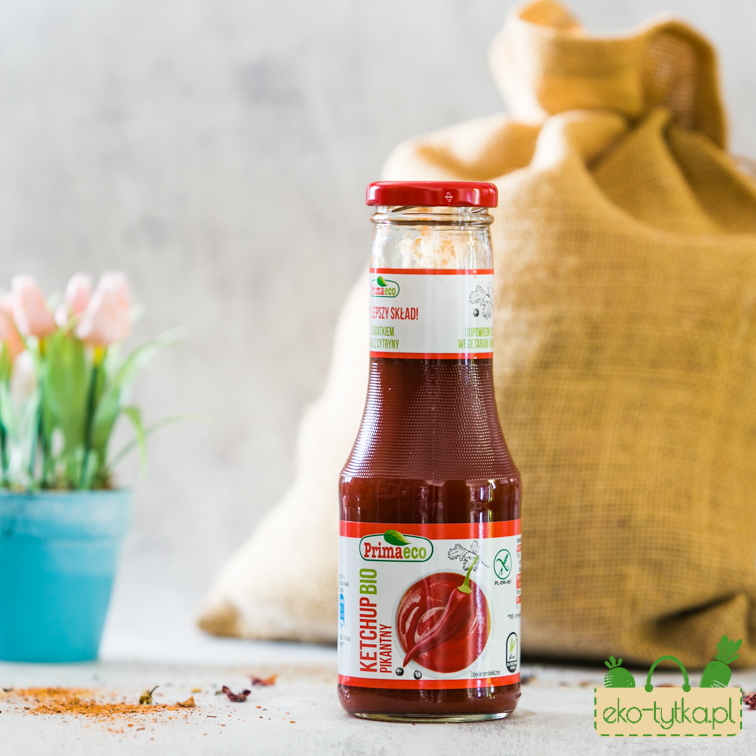 Ketchup pikantny BIO stworzony z wyselekcjonowanych pomidorów i świetnie skomponowanej mieszanki ziół i przypraw. Wyprodukowany z dużej ilości pomidorów, pozbawiony zbędnych substancji chemicznych i polepszaczy. Zawiera wiele cennych minerałów jak fosfor, cynk, magnez, potas, wapń oraz witamin z grupy B (B1, B2, B3, B5, B6, B9), C, E, K. Pomidor jest jednym z niewielu warzyw, które poddane obróbce termicznej nie tracą cennych właściwości, wręcz przeciwnie. Pod wpływem wysokiej temperatury, zawarty w pomidorach likopen staje się lepiej przyswajalny. Jego zawartość w pomidorach przetworzonych jest 3 razy większa niż w świeżych.