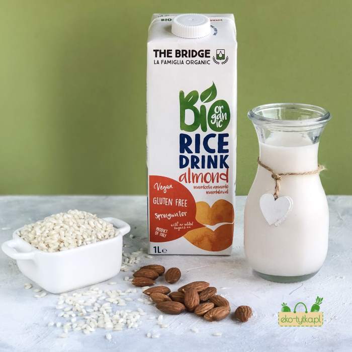 Napój ryżowy z migdałami EKO to propozycja dla smakoszy, którzy w produktach spożywczych na równi z zaletami zdrowotnymi cenią sobie wyjątkowe walory smakowe. Produkt ten jest bowiem tworzony na bazie krystalicznej wody źródlanej pochodzącej z włoskich gór Lessini. Recepturę uzupełnia ryż uprawiany w warunkach ekologicznych, a dołączają do tego oleje roślinne oraz sól morska. Wyjątkowym dodatkiem wzbogacającym smak napoju jest pasta migdałowa.