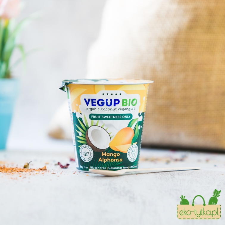 VegUp BIO to 100% roślinne jogurty. Smaczna alternatywa dla nabiału. Kremowy produkt kokosowy którym z powodzeniem można zastąpić tradycyjny jogurt w każdej potrawie, to również idealna przekąska na drugie śniadanie czy zdrowy deser. Dostępne są także opcje smakowe: produkt kokosowy jabłko-cynamon, jagoda-czarna porzeczka oraz naturalny, wszystkie charakteryzują się bardzo dużą zawartością owoców i brakiem dodatku cukru. VegUp BIO nie zawiera sztucznych dodatków, wypełniaczy czy ulepszaczy.